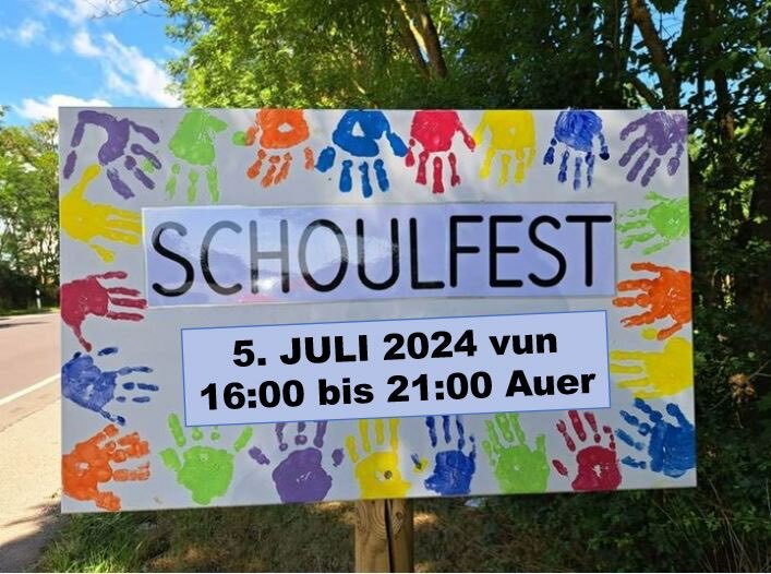 De Fréisenger Schoulfest fënnt de 5. Juli statt ab 16 Auer am Haff, mir soen elo schonn e grousse merci der APEF fir d'Organisatioun an un all deene Leit déi wäerten hëllefen fir eis dat Fest ze erméiglechen.