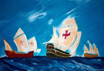 Isabella segelte er von Spanien aus mit drei Schiffen über en Atlantischen